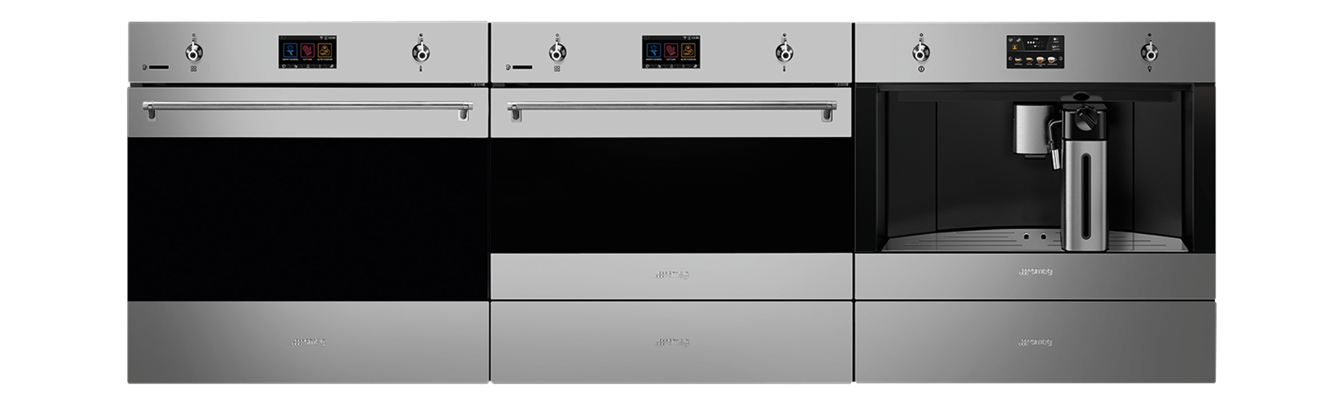 Classic is the name given to the first aesthetic line that Smeg has developed in conjunction with the architect Guido Canali. The range is distinctive for the way it uses stainless steel with the utmost stylistic rigour. Classic which encompasses ovens, hobs, coffee machines, refrigerators and hoods, highlights the unique control knobs and the handles of the ovens, whose clean, refined and modern shapes combine to create elements of industrial design.