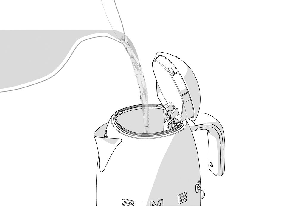 Cuando vierta agua en el hervidor, no debe superar su capacidad máxima para evitar la acumulación de cal en los mecanismos de apertura de la tapa del hervidor. Esto ayudará a preservar la funcionalidad del producto. Puede comprobar la cantidad máxima de agua directamente en el hervidor.