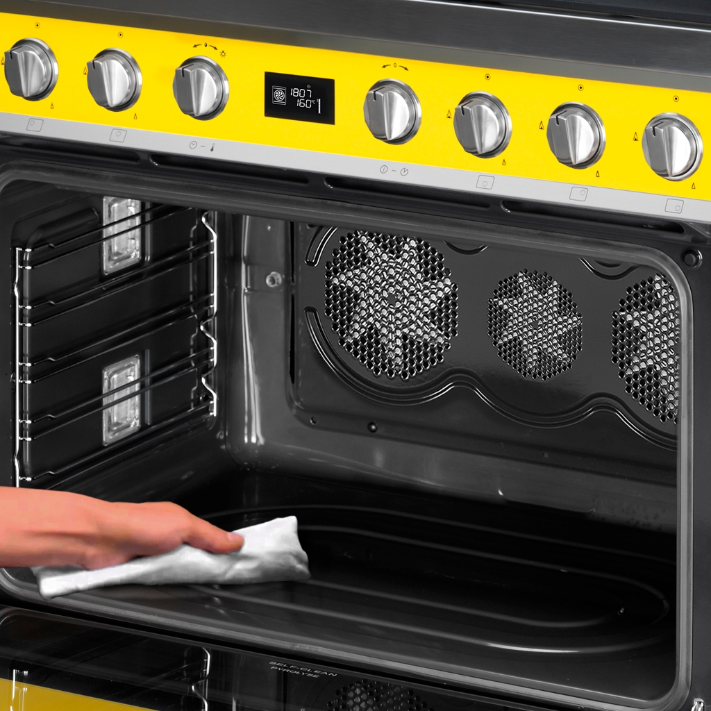 Facilita la limpieza con sólo poner un poco de agua y detergente en la base de la cavidad del horno para generar vapor y liberar los alimentos quemados de las paredes del horno.