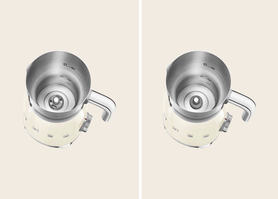 Découvrez ici les deux fouets inclus, cranté pour la mousse de lait et lisse pour un mélange chaud et homogène, sans mousse.