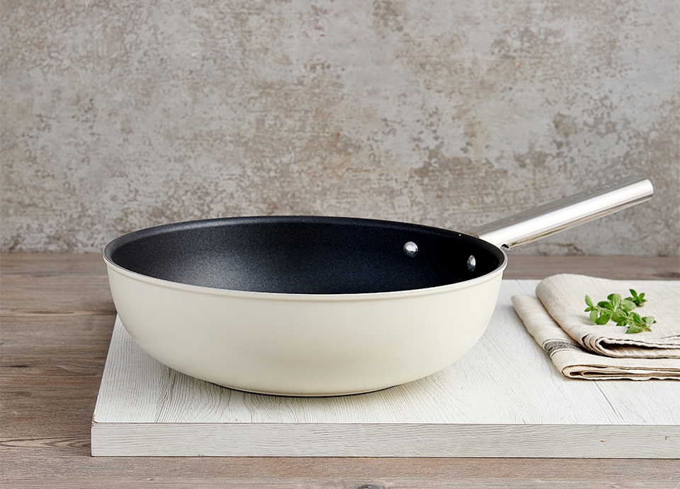 L'aluminium est forgé à froid, ce qui permet de calibrer l'épaisseur du matériau à 4,5 mm dans les parties où cette épaisseur est nécessaire : sur le fond, pour une meilleure répartition de la chaleur, et sur le bord, pour assurer une plus grande résistance au produit.
