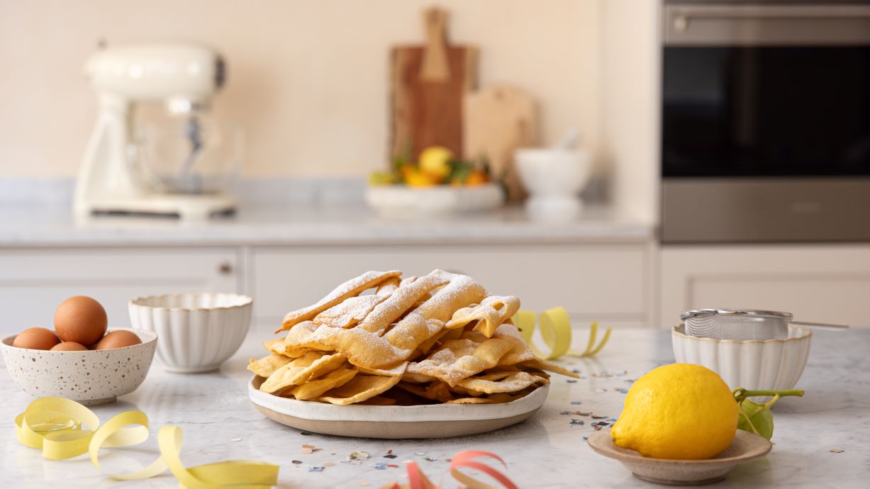 Spolverizzare le chiacchiere di Carnevale con abbondante zucchero a velo.