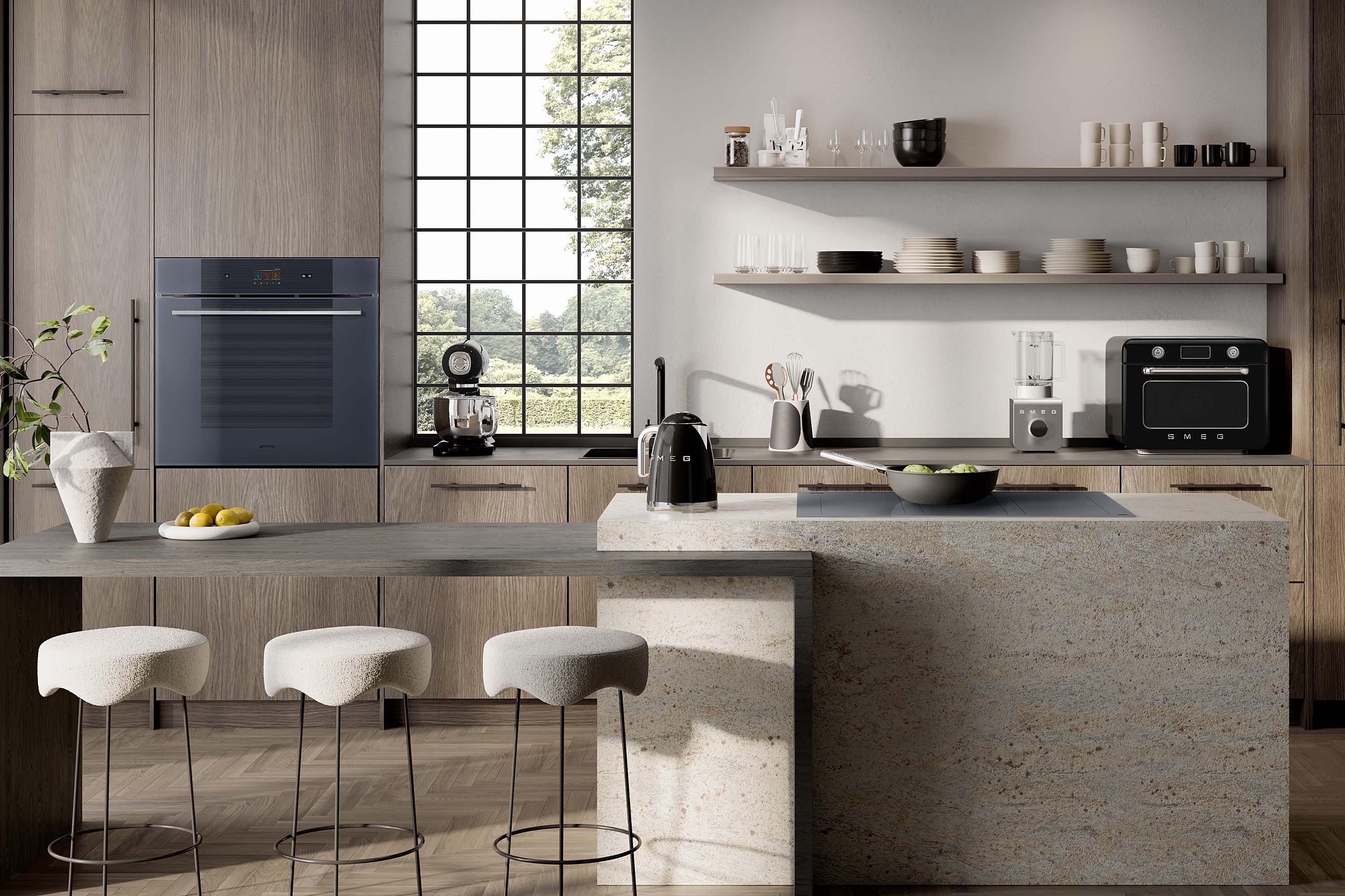 Inequívoco y de carácter contemporáneo, su estética se caracteriza por finos acabados tono gris sofisticado con diseño simple e intuitivo que hace que los electrodomésticos sean el centro de atención de la cocina, en sintonía con la tendencia en tecnología y excepcional funcionalidad.