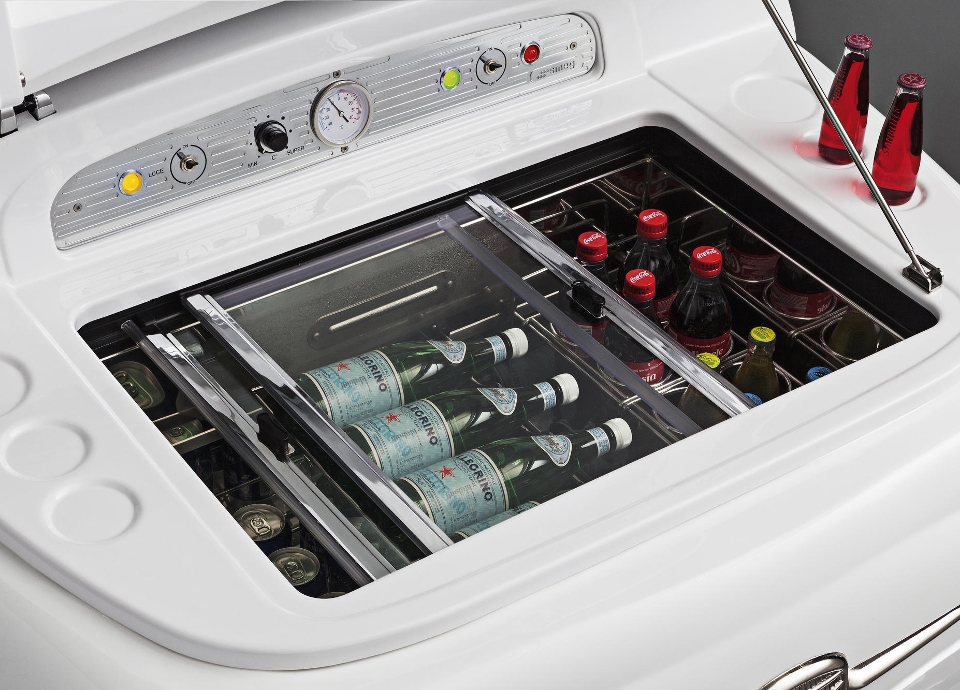 Smeg and Fiat merge form and function to create an extraordinary new item for the “FIAT 500 Design collection”. Because a refrigerator is not just an electrical appliance, and a bonnet is not just a car part.
