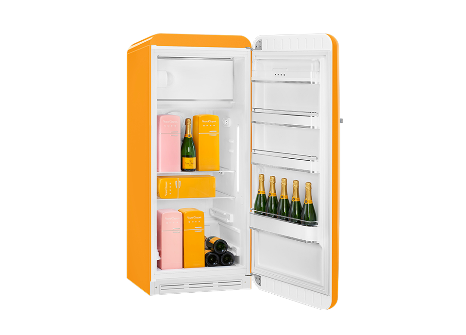 Smeg lanceert een nieuwe lijn van kleurrijke koelkasten in samenwerking met Veuve Clicquot, om het 250 jarig bestaan van het Frans champagne huis te vieren.