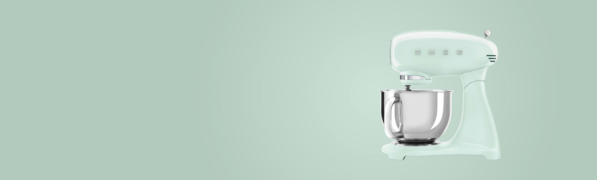 Mange sier at det er det beste hjelpemiddelet på kjøkkenet. Smegs prisbelønte kjøkkenmaskiner er blitt et stilikon i seg selv. De har en kropp av formpresset aluminium og et enestående ergonomisk design. Bollen på 4,8 liter av polert rustfritt stål har perfekt kapasitet for en rekke forskjellige bruksområder og sitter under den direktedrevne motoren på 800 W med planetarisk blandefunksjon. Hevearmen muliggjør variabel hastighetsstyring – de lavere hastighetene er perfekte til luftig elting av deig, de høye passer bedre til rask og effektiv omrøring.