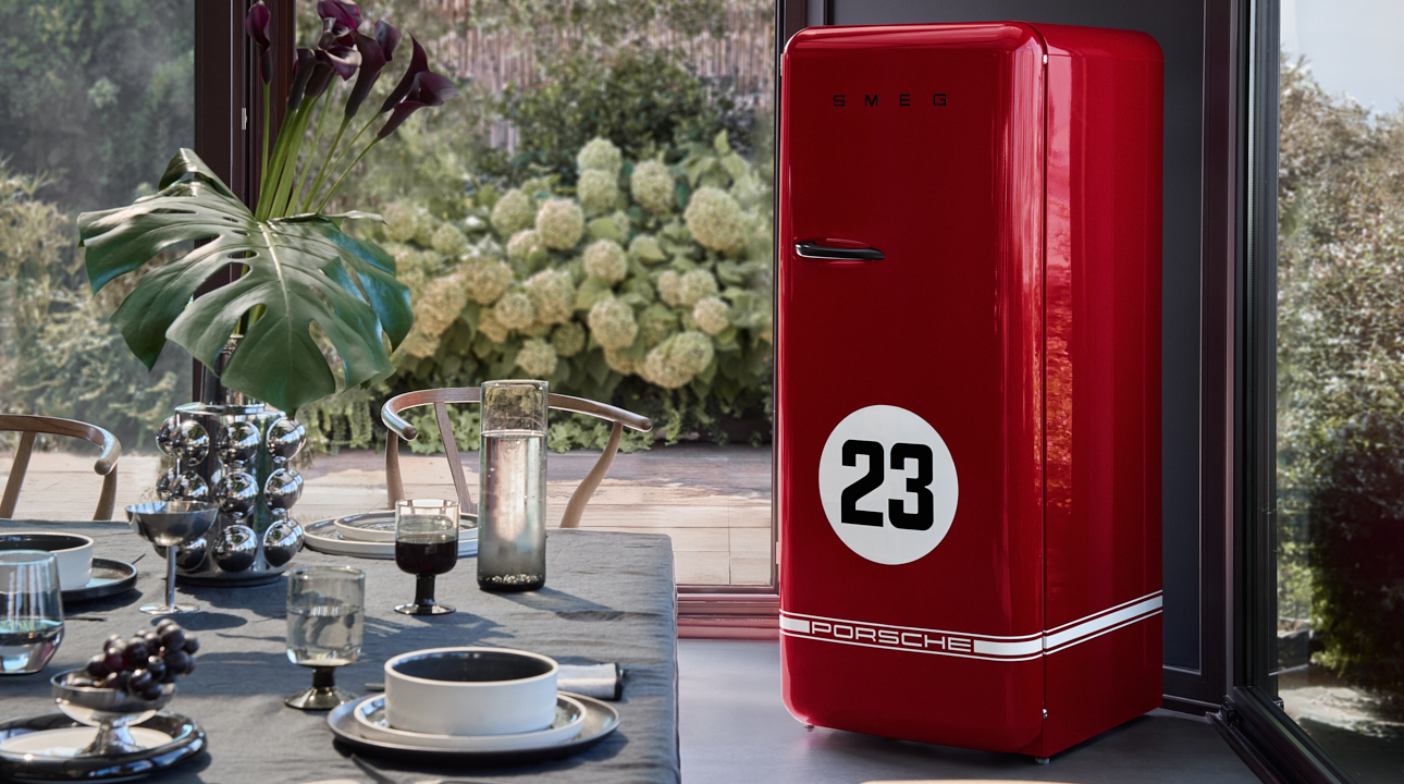 The Porsche × SMEG FAB28 917 Salzburg wears the legendary red livery and racing stripes with matte‑black accents and a numbered authenticity plate. Limited to 1,970 pieces, it’s a statement of heritage crafted for everyday performance.