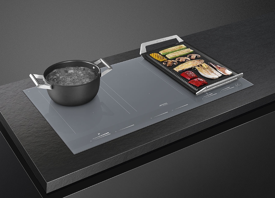 As novas placas de indução Linea em Silver têm uma cor única no mercado, fazendo com que possa criar uma cozinha exclusiva e esteticamente coordenada com outros eletrodomésticos Smeg também no mesmo acabamento. Assentam num design minimalista e são perfeitas para cozinhar com segurança, de uma forma prática e com os mesmos níveis de desempenho das placas a gás. Os símbolos são revestidos pela cerâmica que cobrindo toda a placa, permitem mover as panelas e os tachos sem atritos e sem desgaste. Os comandos touch e slider individuais para cada zona são discretos e elegantes.