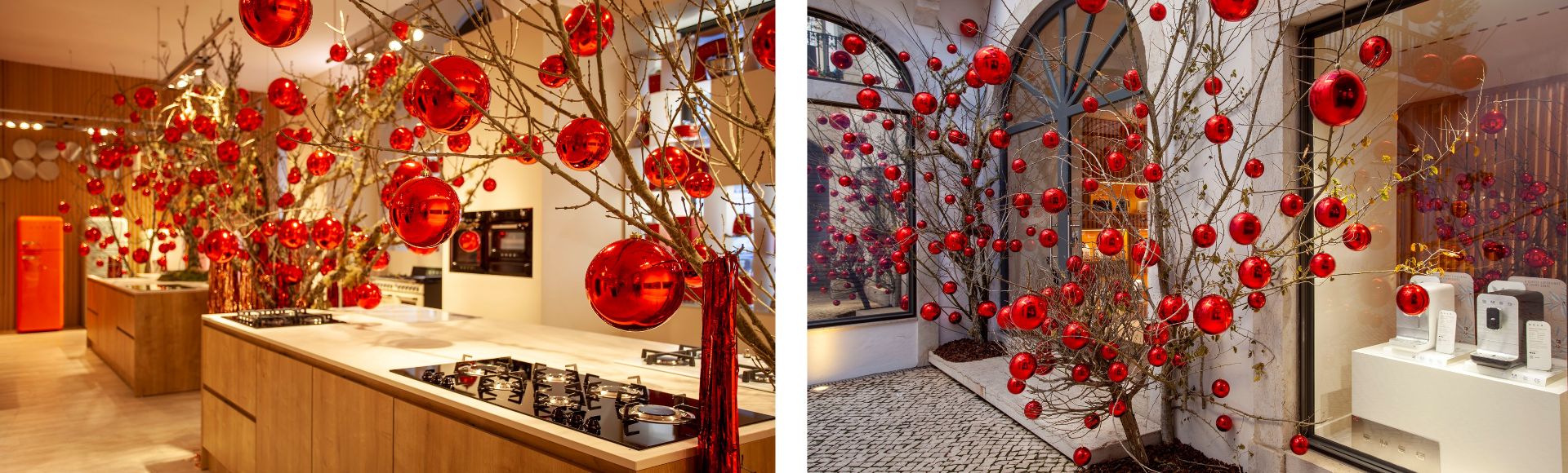 Para realizar este desejo, a Smeg convidou o arquiteto Dino Gonçalves, o qual, com toda a liberdade criativa, executou a decoração de Natal para a Smeg Store do Chiado. Inspirado na pintura realista e na natureza morta de Coubert, adicionando o brilho da época natalícia, o Arquiteto criou a sua própria pintura e fauna, para representar o Natal da Smeg Store para 2021. Do apanhar dos galhos caídos no chão, surgem árvores imponentes e majestosas, onde frutas, flores e musgo, são dubiamente substituídos por bolas vermelhas de grande impacto e por cortinas reluzentes de Natal.