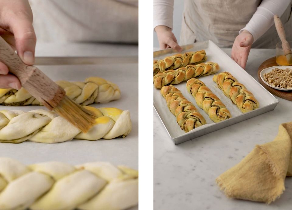 Pincele a trança com gema de ovo e leve ao forno a 180ºC, durante 20/ 25 minutos, ou até dourar.