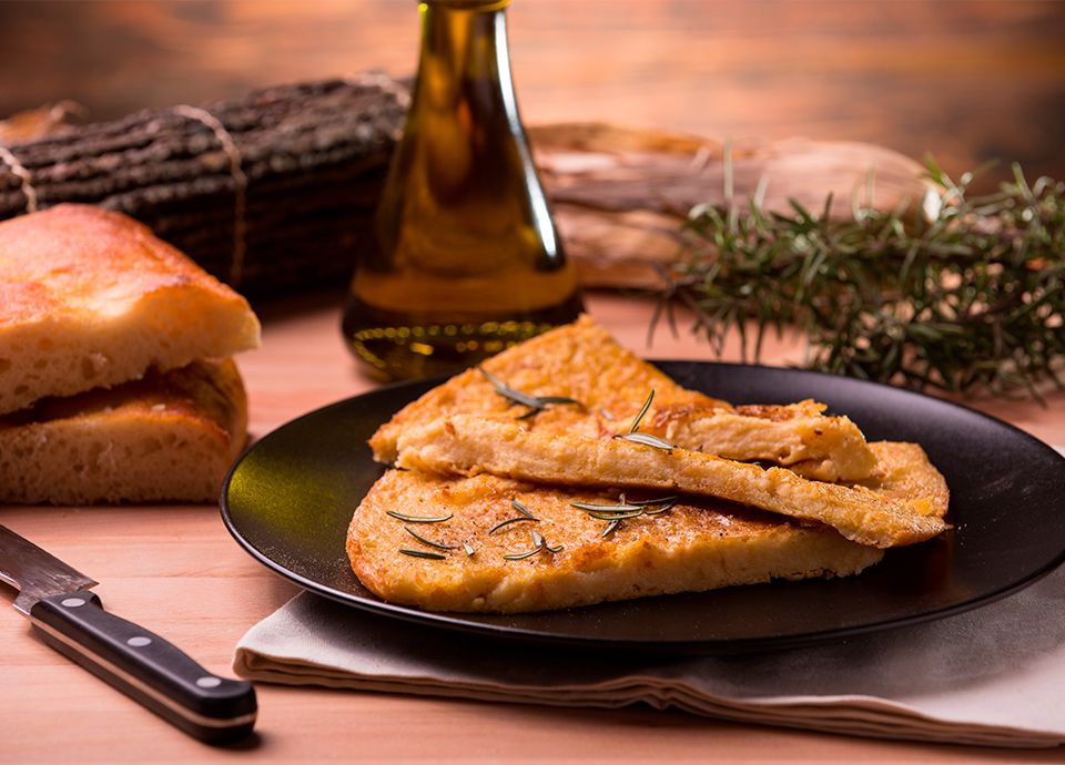 Savory Italian flatbread made with chickpea flour, olive oil, and salt. Baked on a hot stone until crisp outside and soft inside.