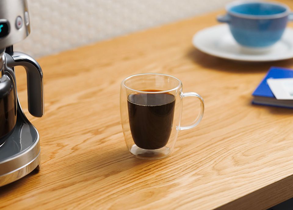 Let the brewing process finish and serve the coffee piping hot in a glass or porcelain mug.
