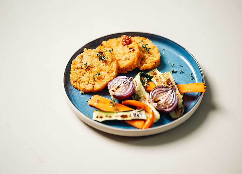 Hearty and full of flavour, these lentil burgers combine sweet carrots, savoury sun-dried tomatoes and wholemeal breadcrumbs for a rich, satisfying bite. Prepared with the Sametime function for even cooking, they are a wholesome option with vibrant colours and a soft, rustic texture.