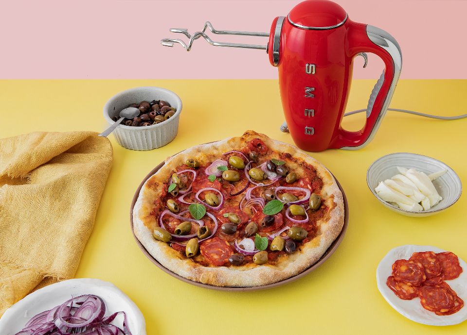 Transfer carefully to a hot oven and bake at 250°C for about 10 minutes. Once cooked, add the olives and onion.