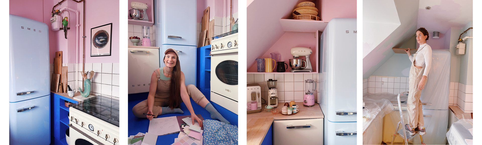 Det råder ingen tvekan om att jag gärna ville göra ett kök med Smegs färger i centrum. Jag var därför väldigt noggrann med att de skulle matcha mitt val av färger till köket och inte sticka ut åt för många olika håll. Jag tycker att resultatet blev fint och annorlunda och jag älskar verkligen mitt nya blå kylskåp med de runda mjuka formerna som jag inte kan låta bli att klappa flera gånger om dagen. Dessutom är det en stor lyx att kunna göra en god kopp kaffe under en hektisk dag med jobb och två små barn. Då börjar morgonen bra.