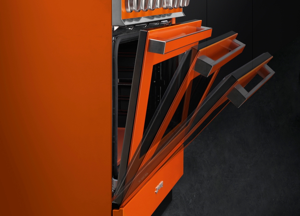 All Portofino range models combines the best cooking technology with the unmistakeable style of Italian design. Professional perfomance meets energy savings, with highly-efficient electrical and fan systems combined with expertly-heat-retaining, and surprisingly-large, oven cavities adding up to the most energy-effecient range ever made. Air-cooled soft-close triple-glazed doors, and full-width continuous grates make cooking and cleaning a breeze.