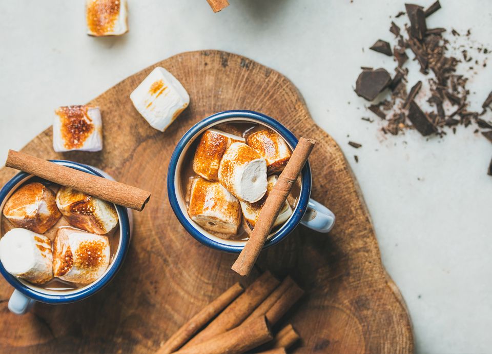 Pour the hot chocolate into your serving mug, and sprinkle with marshmallows. Gently torch and caramelise your marshmallows for an added dose of deliciousness.