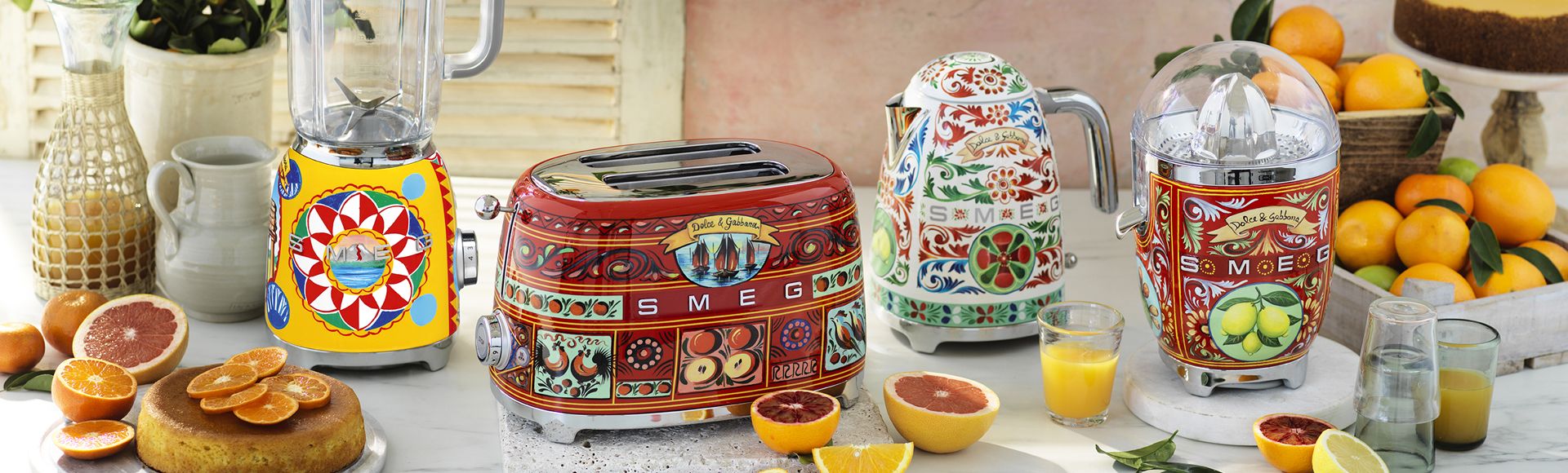 Fashion powerhouse Dolce&Gabbana and Smeg have teamed once up again to bring you Sicily is my Love, a breathtakingly beautiful collection of runway-ready small appliances. The colourful line-up includes toasters, a kettle & citrus juicer and is made by Smeg with unmistakable Dolce&Gabbana flair.